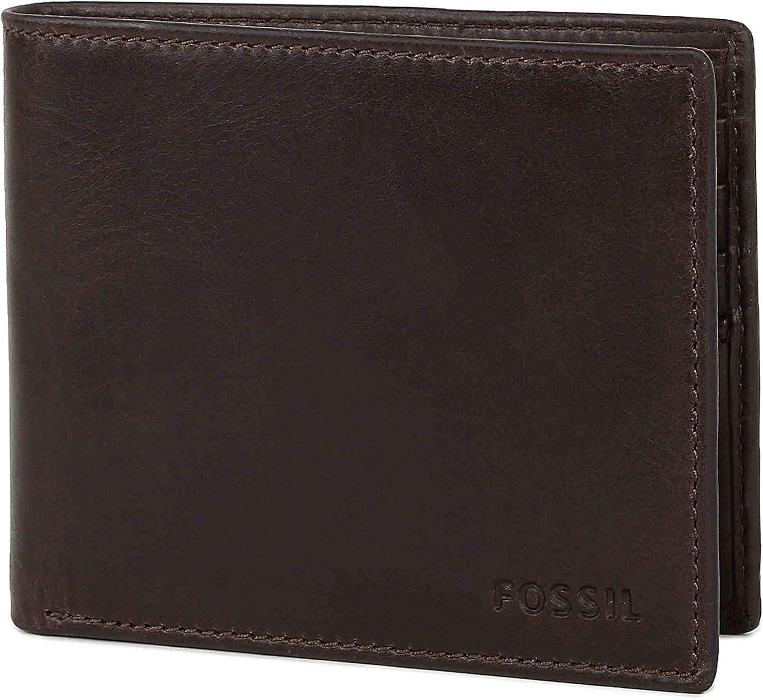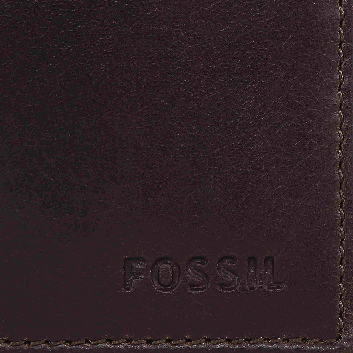 Fossil Men’s Derrick Leather RFID-Blocking Bifold Passcase with Removable Card Case Wallet(Dark Brown)