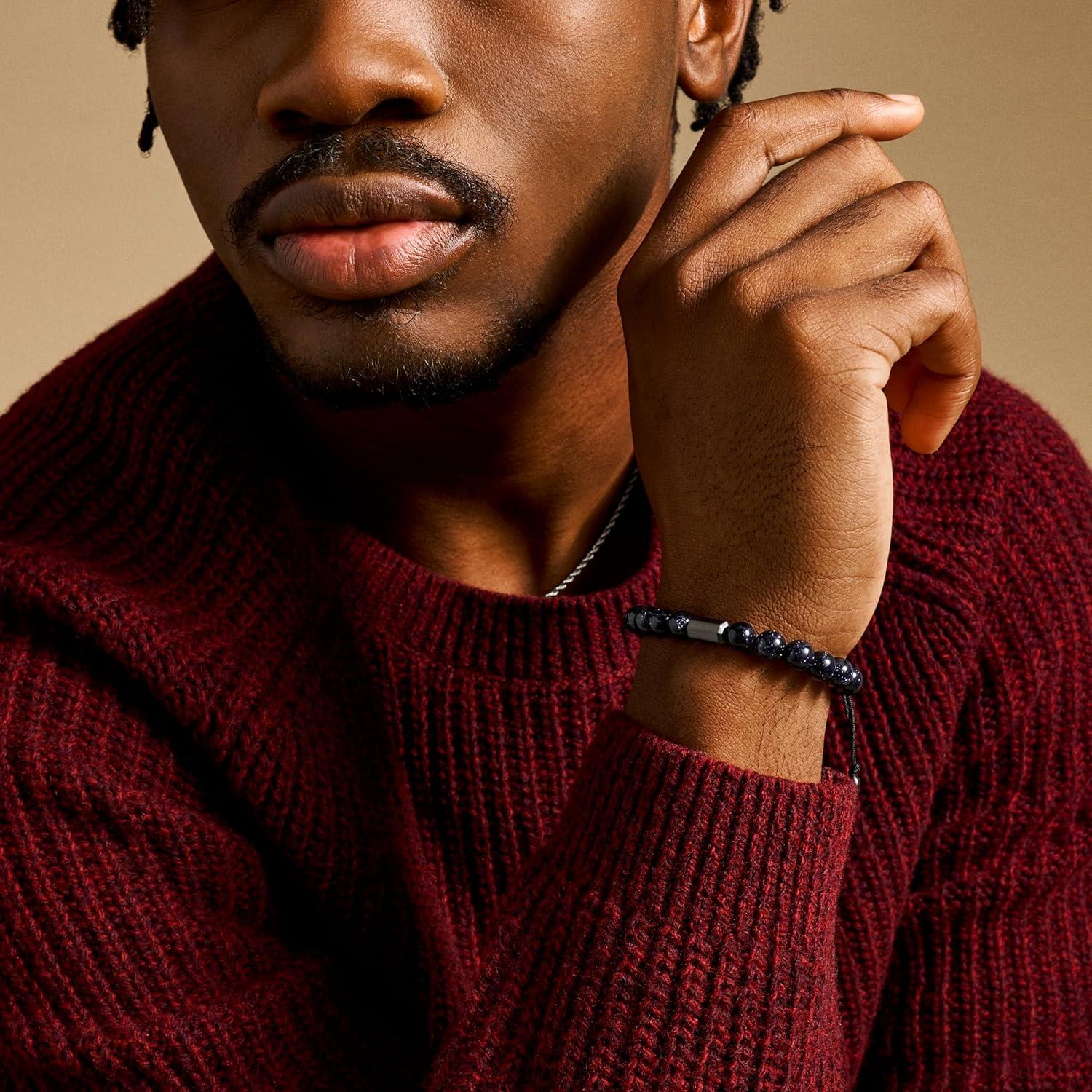 Fossil Men’s Stainless Steel and Genuine Leather and/or Beaded Bracelet for Men(Black Bead)