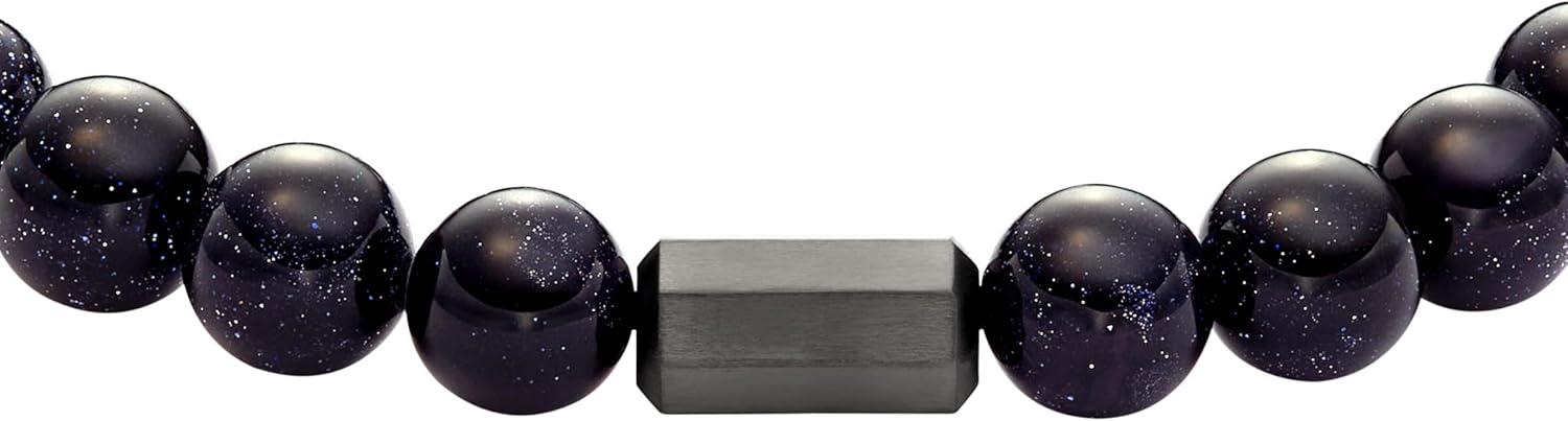 Fossil Men's Stainless Steel and Genuine Leather and/or Beaded Bracelet for Men(Black Bead)