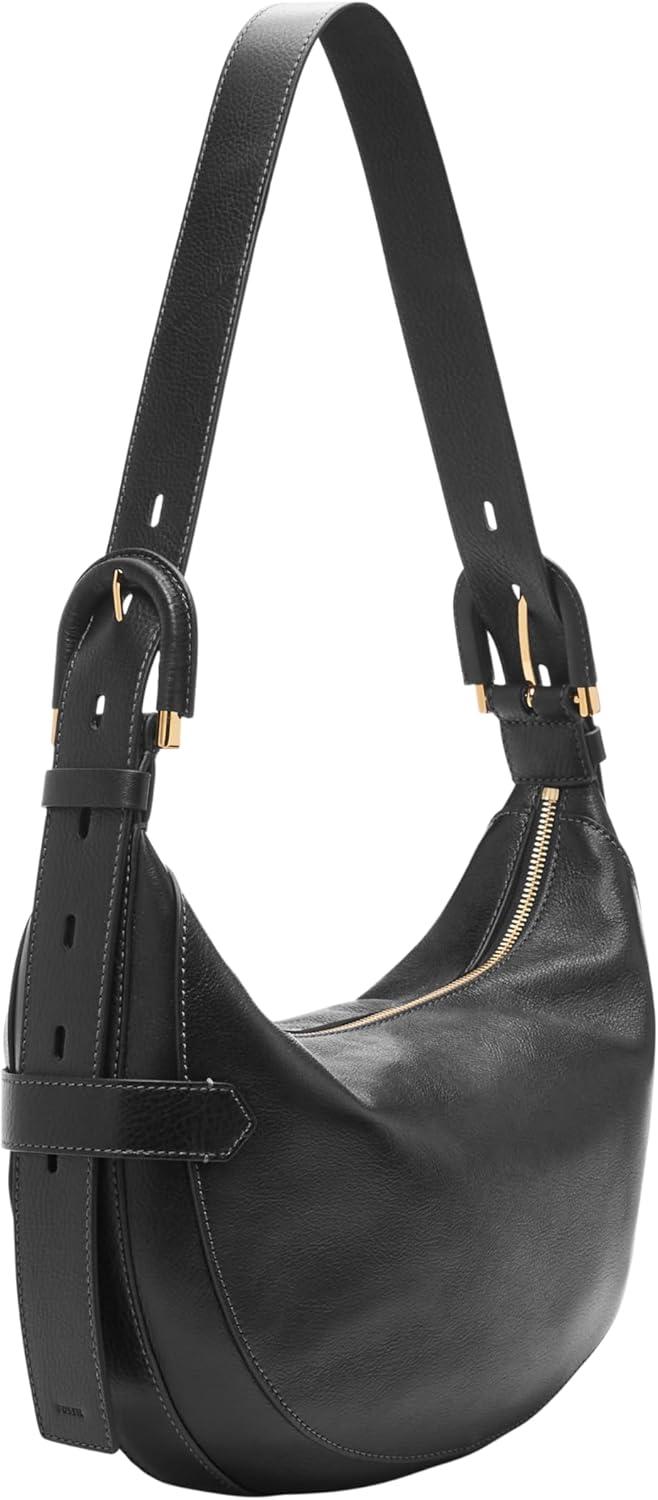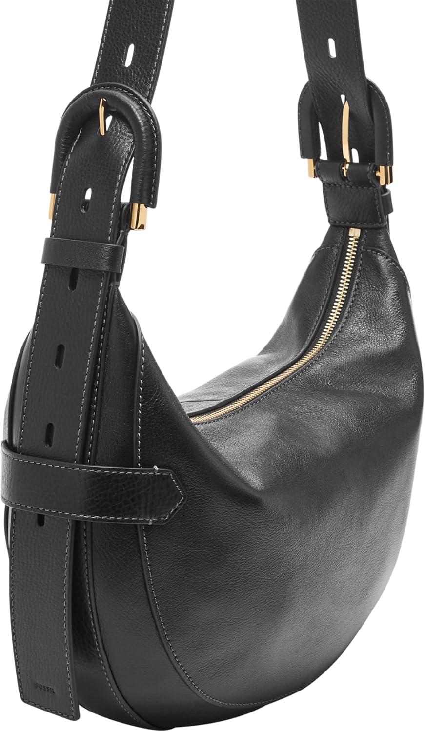 Fossil Women’s Harwell Leather Hobo Purse Handbag for Women(Black)