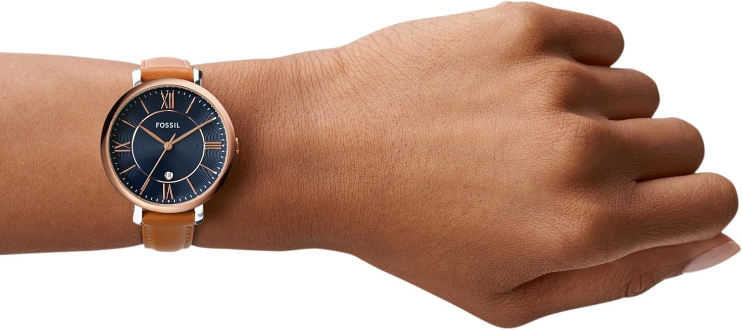 Fossil Women’s Jacqueline Quartz Stainless Steel Three-Hand Watch(Brown Leather/Rose Gold/Blue)