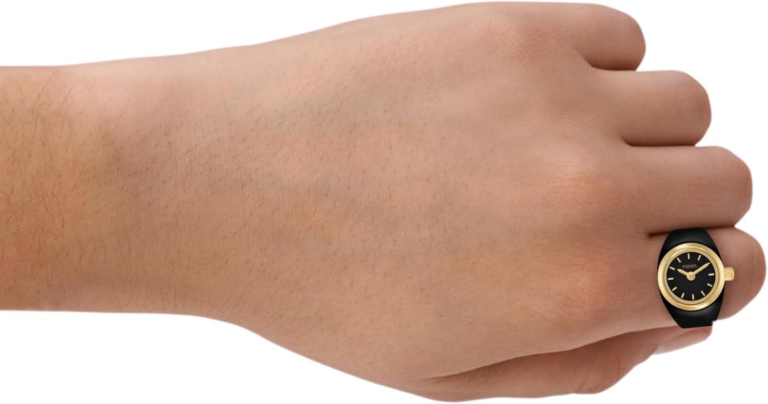 Fossil Women's Quartz Stainless Steel Two-Hand Watch Ring(Gold/Black)