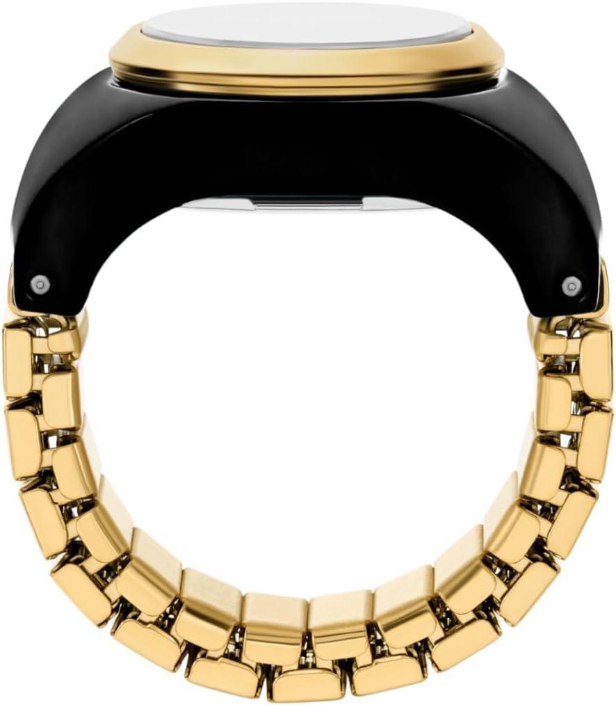This unique piece is both a ring and a watch—your new favorite accessory. The 15mm watch ring features easy-to-read indices and a rose gold sunray dial with subtle accents, powered by a two-hand movement. Its rose gold-tone stainless steel expansion band stretches to fit any finger comfortably. This stylish watch ring for women combines fashion and function in a compact design.